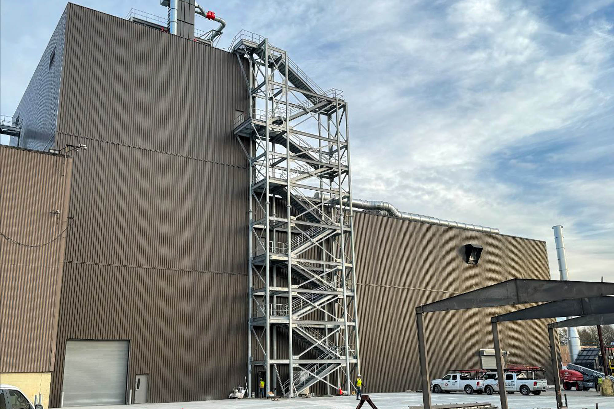 Thie 45,450 sq. ft. facility contains a main building area that is 3 stories tall, and a high bay for a Tandem Mixer that is an impressive 131’ tall. Two interior structural mezzanines support the Tandem Mixers, with each mezzanine being 24” thick.